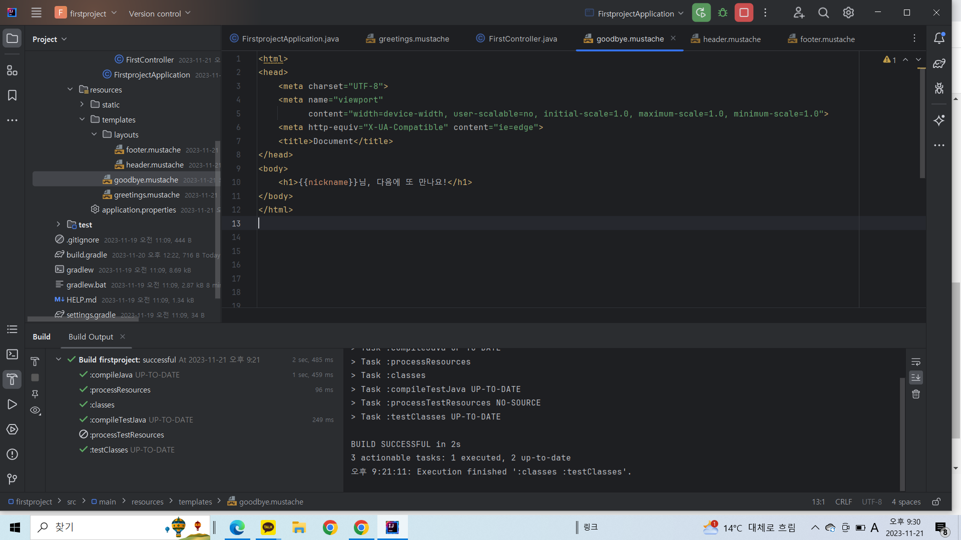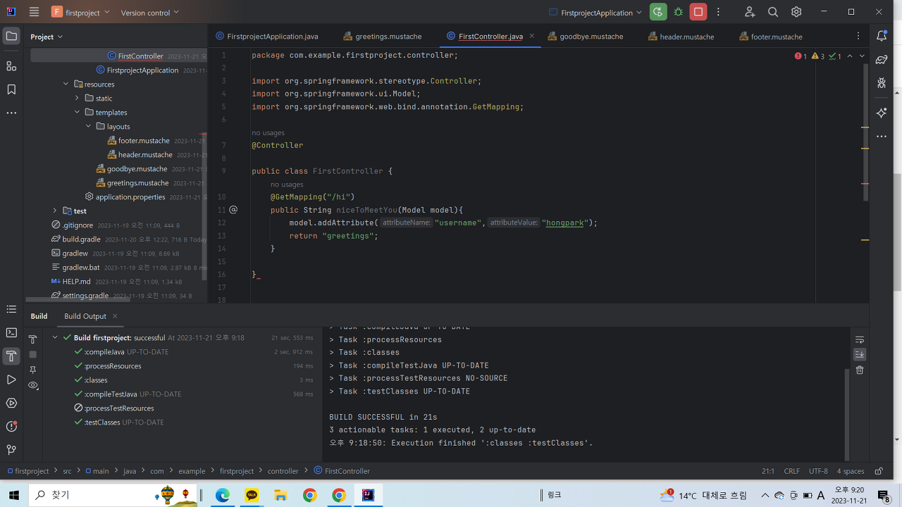 - 메서드 수행 결과로 greetings.mustache 파일을 변환